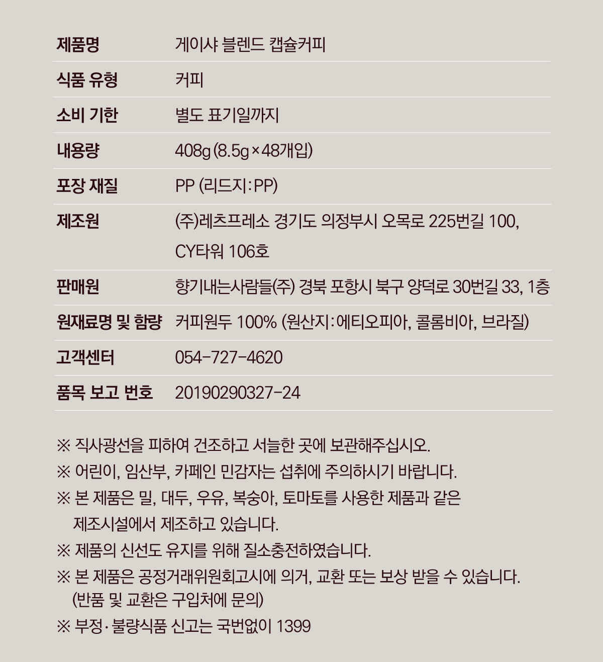 원두 제품의 경우 주문 확인 후 로스팅하기 때문에 2-4일 후 출고될 수 있습니다. 이점 유의하시고 여유있게 주문 부탁드립니다.