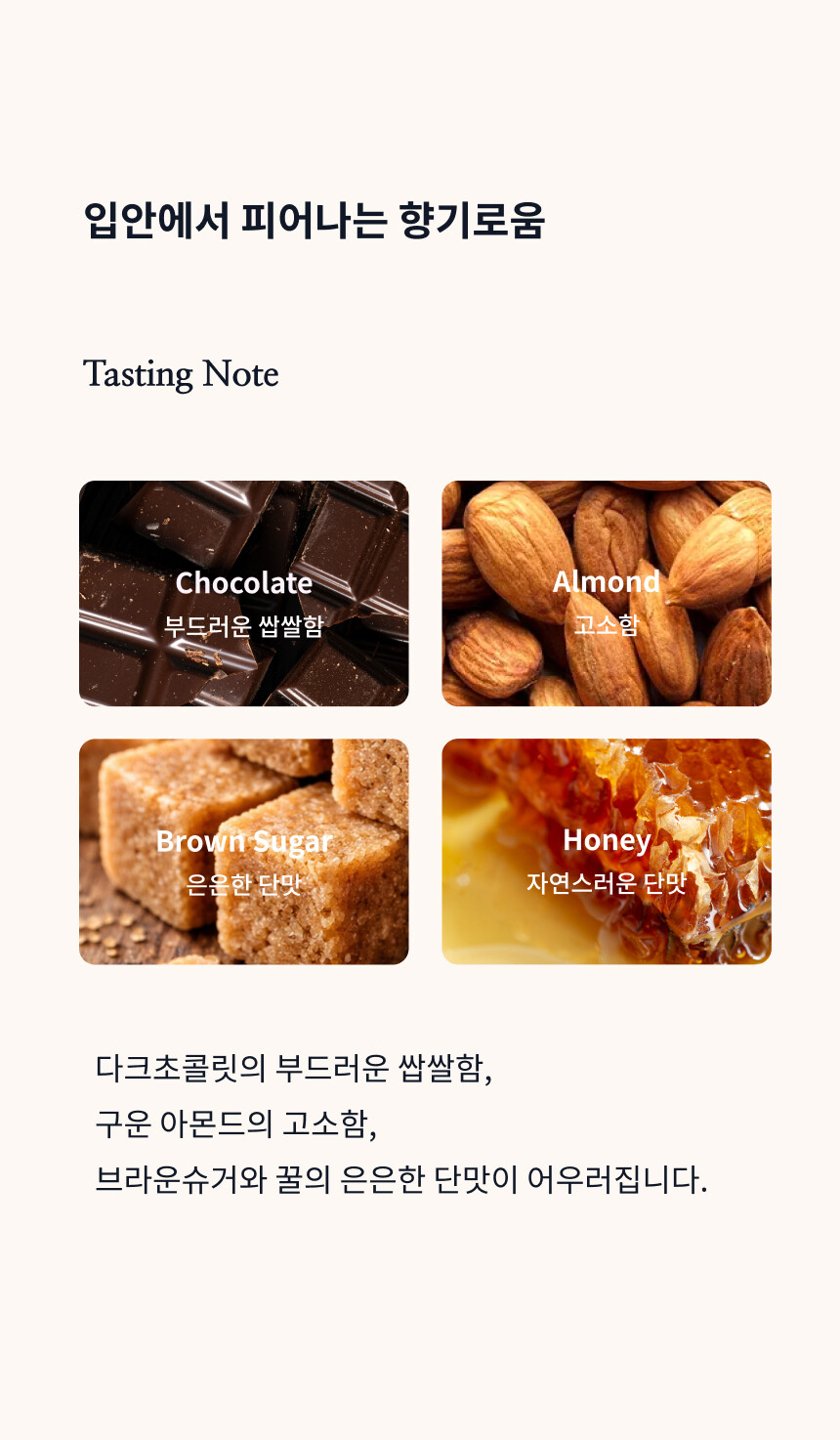 다크초콜릿처럼 부드럽고 균형 잡힌 향미를 완성했습니다.