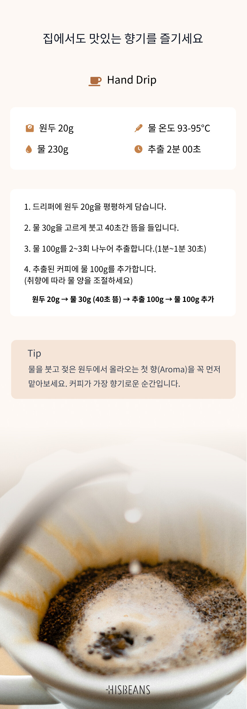 히즈빈스는 분쇄전 원두인 홀빈을 비롯, 5단계의 분쇄옵션을 제공해 드리고 있습니다.