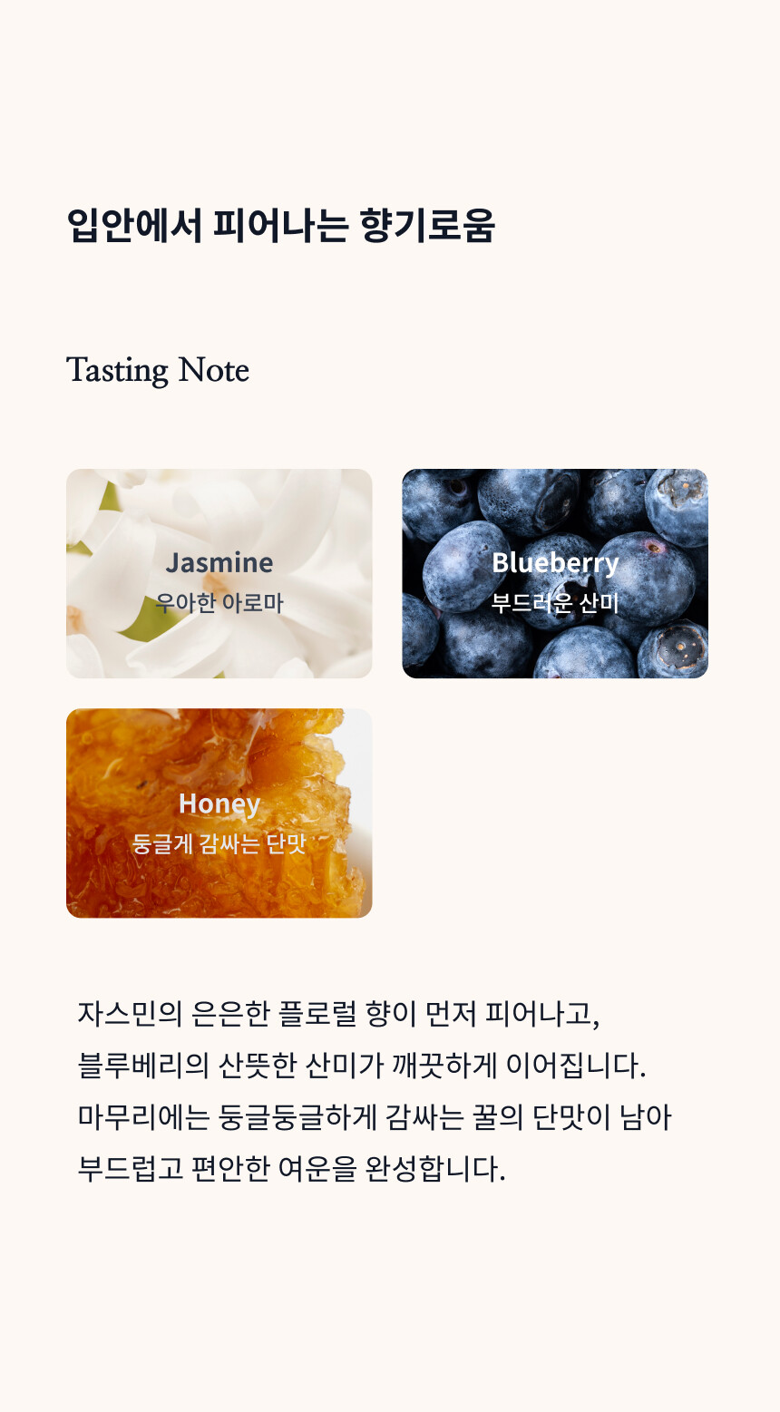 화사하면서도 자극적이지 않은 향미를 완성했습니다.