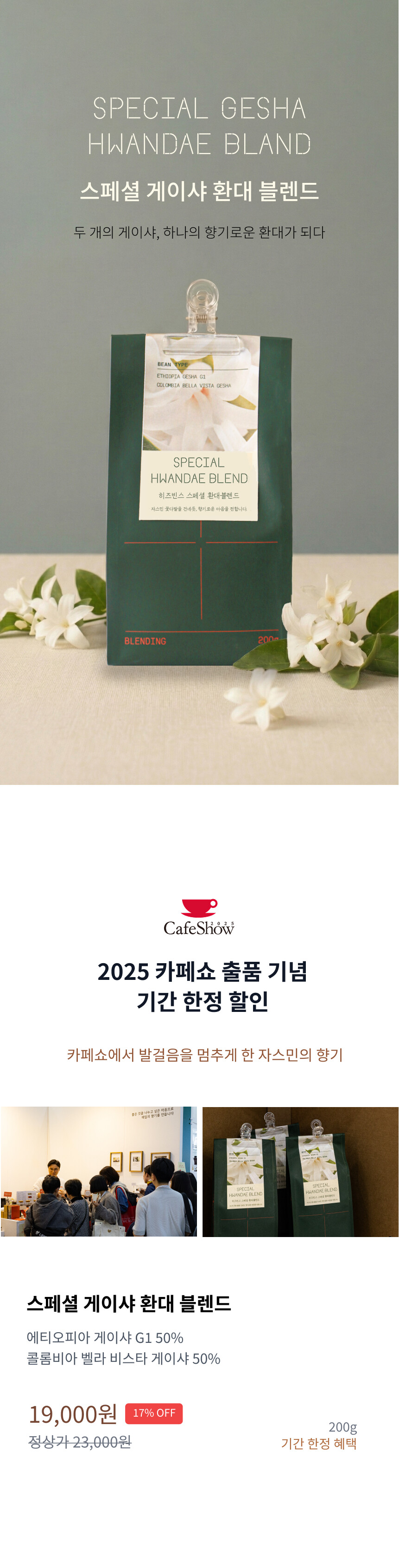 히즈빈스 스페셜 게이샤 환대 블렌드 원두 200g