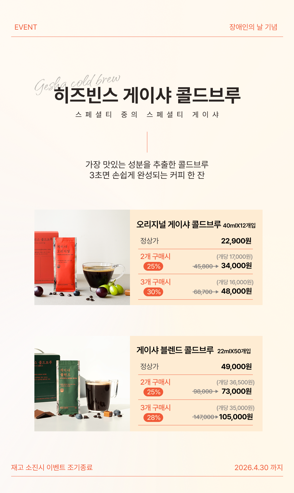 (이벤트)히즈빈스 게이샤 블렌드 콜드브루 파우치 22ml×50팩