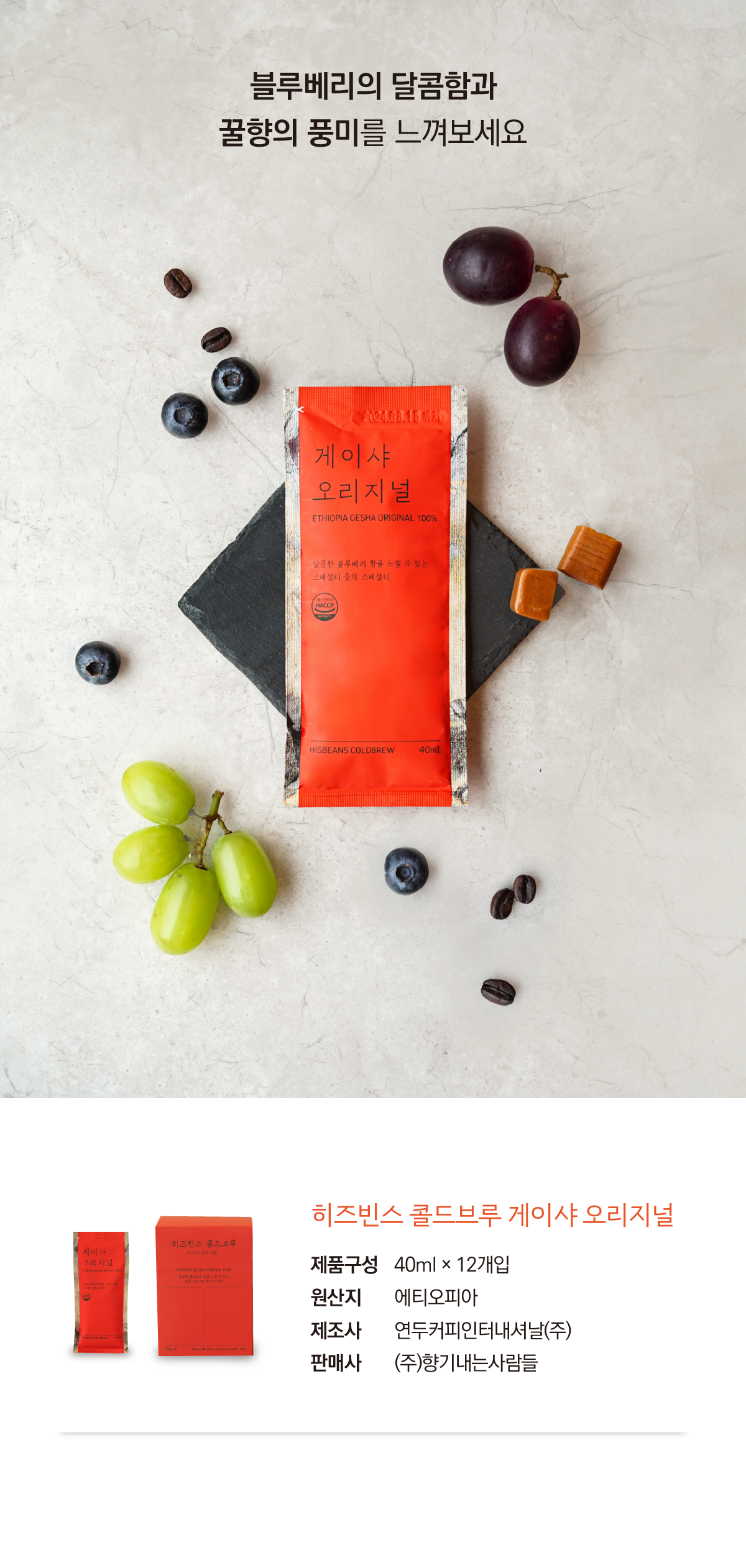 히즈빈스 콜드브루 스페셜티 게이샤 오리지널 40ml×12팩