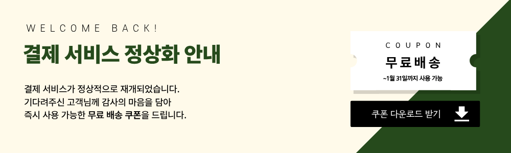 제품의 포장이 훼손되어 상품가치가 상실된 경우 교환/반품/환불이 불가능하오니 주문 시 참고해주시길 바랍니다.